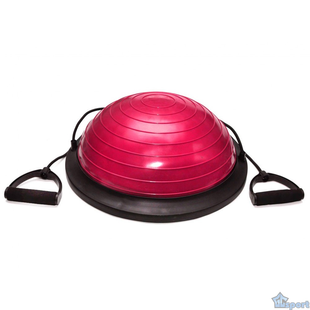 Балансировочная полусфера Sprinter Bosu 45см с двумя съёмными эспандерами (малиновая)