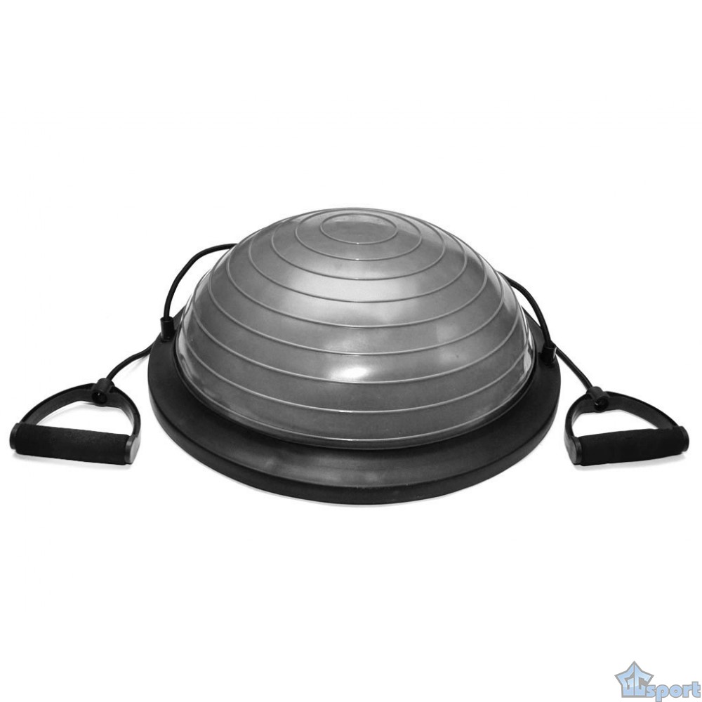 Балансировочная полусфера Sprinter Bosu 45см с двумя съёмными эспандерами (серая)