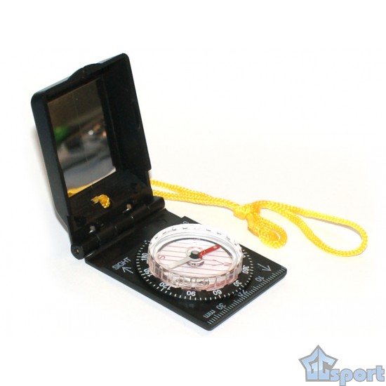 Компас туристический с зеркальным прицелом, с крышкой, пластиковый, на шнуре