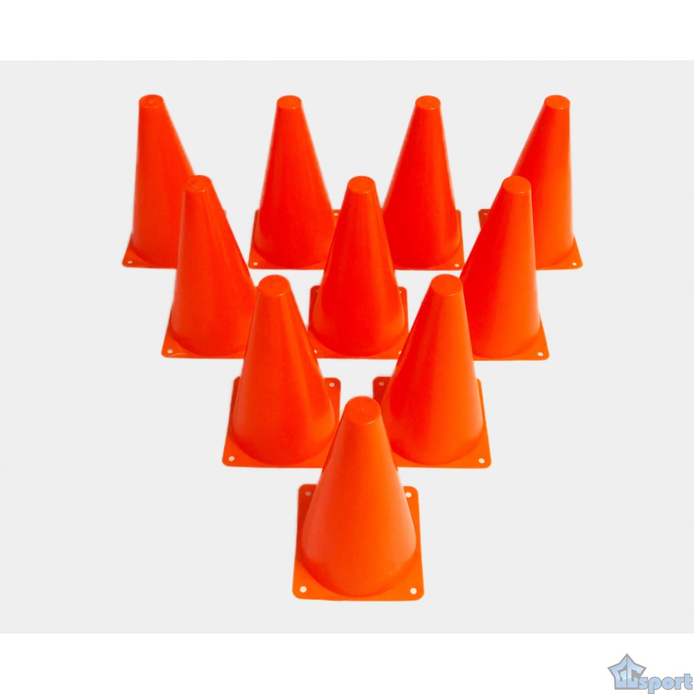 Комплект конусов для разметки трассы для роликов, для радиоуправляемых автомобилей, тренировки спортсменов и проведения эстафет. В комплекте 10 конусов. Конусы имеют отверстия для крепления к полу.