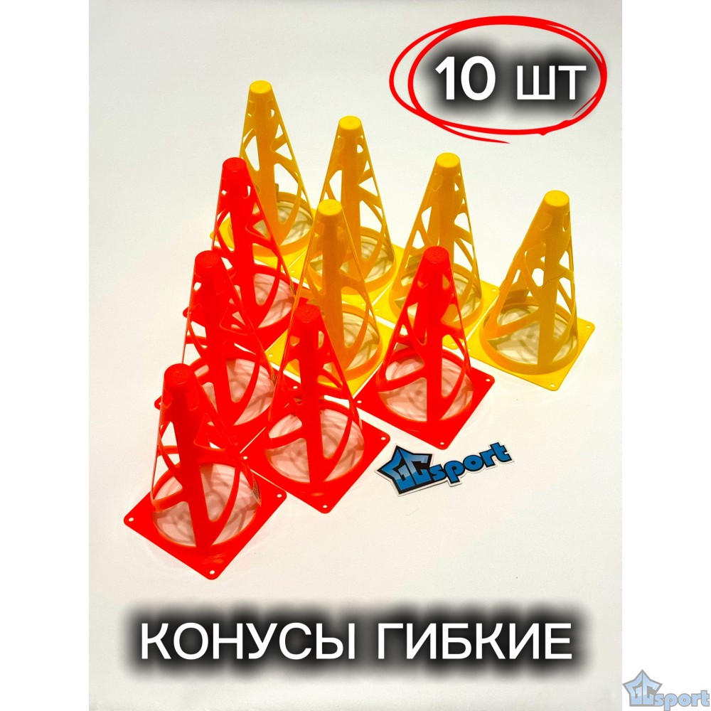Комплект конусов для разметки поля для футбола, легкой атлетики или эстафет. Так же используются для разметки трассы для роликов, для радиоуправляемых автомобилей, тренировки спортсменов и т.д. Конусы изготовлены специальной формы, чтобы обеспечить конусу гибкость.