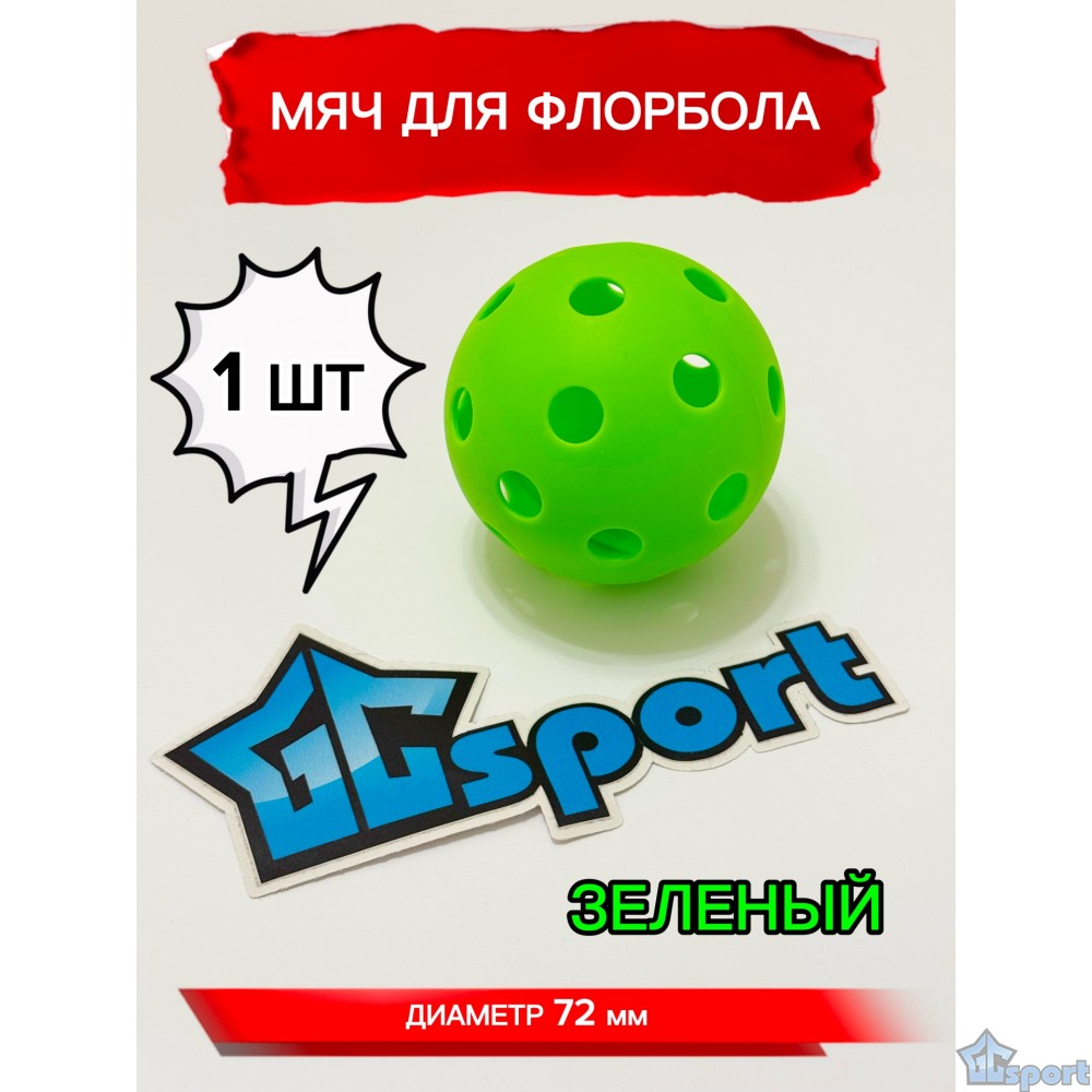 Мяч для флорбола зеленый, 72 мм, 1 шт