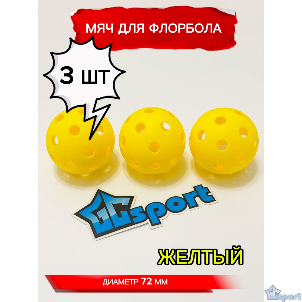 Мяч для флорбола, желтый, 72 мм, 3 шт