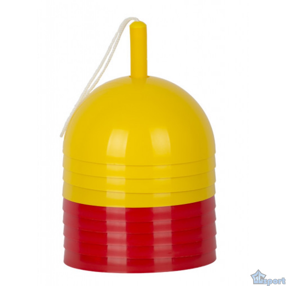 Разметчик представляет собой набор из шести фишек двух ярких цветов, надетых на стойку с петлей для удобства хранения и переноски. Высота стойка 31,5см , параметры фишек : h 10см ,d 20см.