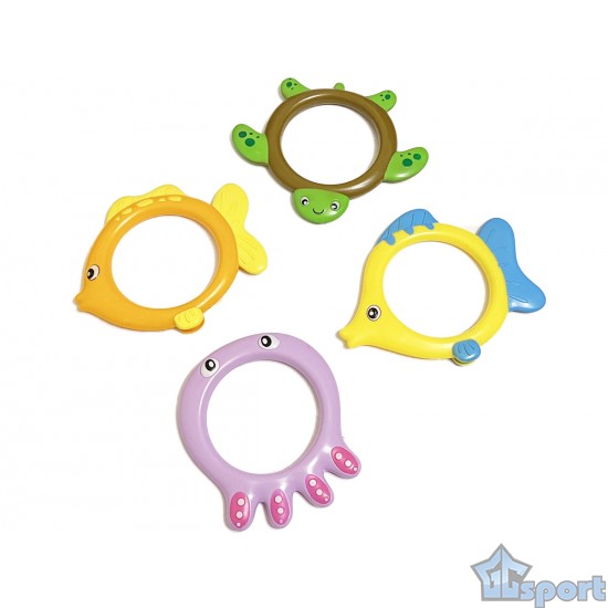 Тонущие (подводные) игрушки для бассейна Кольца Морские обитатели (4шт), для ныряния и обучения плаванию