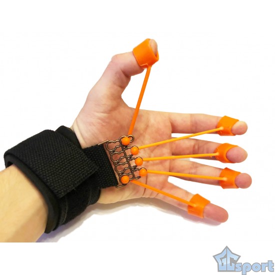 Тренажер эспандер для разгибания пальцев GCsport Hardness – это достаточно простой но очень эффективный тренажёр для пальцев рук. Он выглядит как браслет с пятью кольцами, присоединёнными к нему специальными резинками. Браслет застёгивается на руке, а кольца надеваются на пальцы. Выполняя упражнения, вы сжимаете и разжимаете руку, таким образом, разрабатывая разгибатели пальцев.